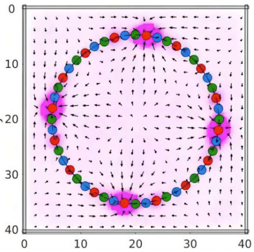 Le cœur du système repose sur un réseau de microbilles recouvertes d’enzymes reliées par des connecteurs flexibles. Lorsque des réactions chimiques se produisent à la surface des billes, les variations de concentration générées provoquent des mouvements de fluide, entraînant une déformation du réseau. Shklyaev décrit : « Cela ressemble à un mille-pattes ou à un ver plat, où une onde de contraction traverse le corps pour le propulser vers l’avant. » Les chercheurs ont réussi à contrôler les caractéristiques de propagation des ondes en ajustant la géométrie du réseau chimico-mécanique.
