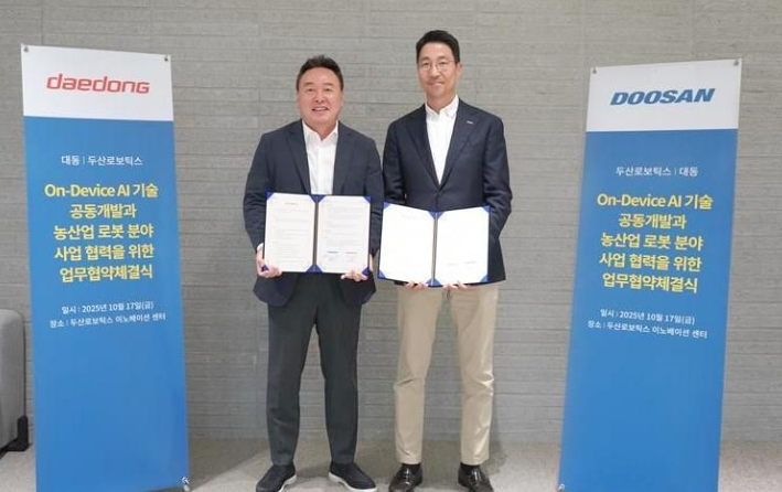 Doosan Robotics et la société coréenne de machines agricoles Daedong ont annoncé lundi leur collaboration pour développer des équipements intégrant des technologies d'intelligence artificielle (IA) et des robots agricoles. Les deux parties ont signé un protocole d'accord (MOU) vendredi au Centre d'innovation de Doosan Robotics, situé à Seongnam, dans la province de Gyeonggi, formalisant cette coopération. Pour ce projet, Doosan Robotics se concentrera sur le développement d'algorithmes et la standardisation des composants clés, y compris les performances, les fonctionnalités et les interfaces des systèmes sur puce (SoC).