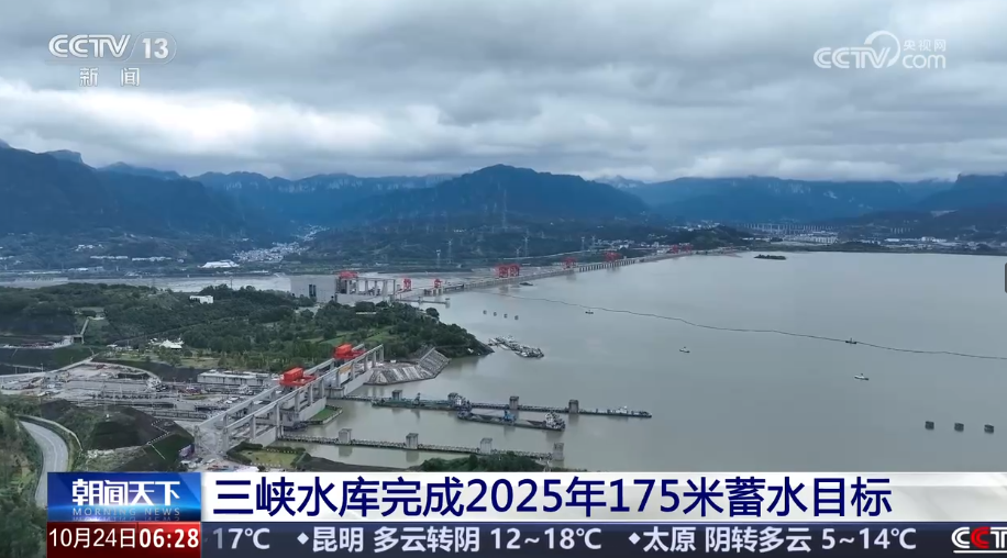 À 8 heures le 24 octobre, le réservoir des Trois Gorges en Chine a atteint son niveau de stockage normal de 175 mètres, marquant la 14e fois depuis 2010 que le réservoir atteint cet objectif. Cela signifie que le groupe de réservoirs en amont du Yangtze, centré sur le réservoir des Trois Gorges, a accompli avec succès sa mission de stockage annuel, posant une base solide pour répondre aux besoins d'approvisionnement en eau, d'irrigation, de production d'électricité, de navigation et d'écologie cet hiver et au printemps prochain.